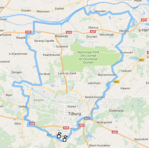 Toerrit via Gilze, Rijen, Kaatsheuvel, Capelle, Wijk en Aalburg, Hedel, Den Bosch, Helvoirt, Haaren, Oisterwijk, Moergestel, Tilburg en terug naar Goirle.